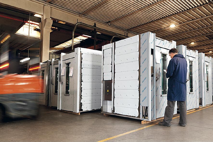 The individual parts, shaped and bent, are now combined together. Every detail, every meticulous operation is carefully kept under control by a technician.